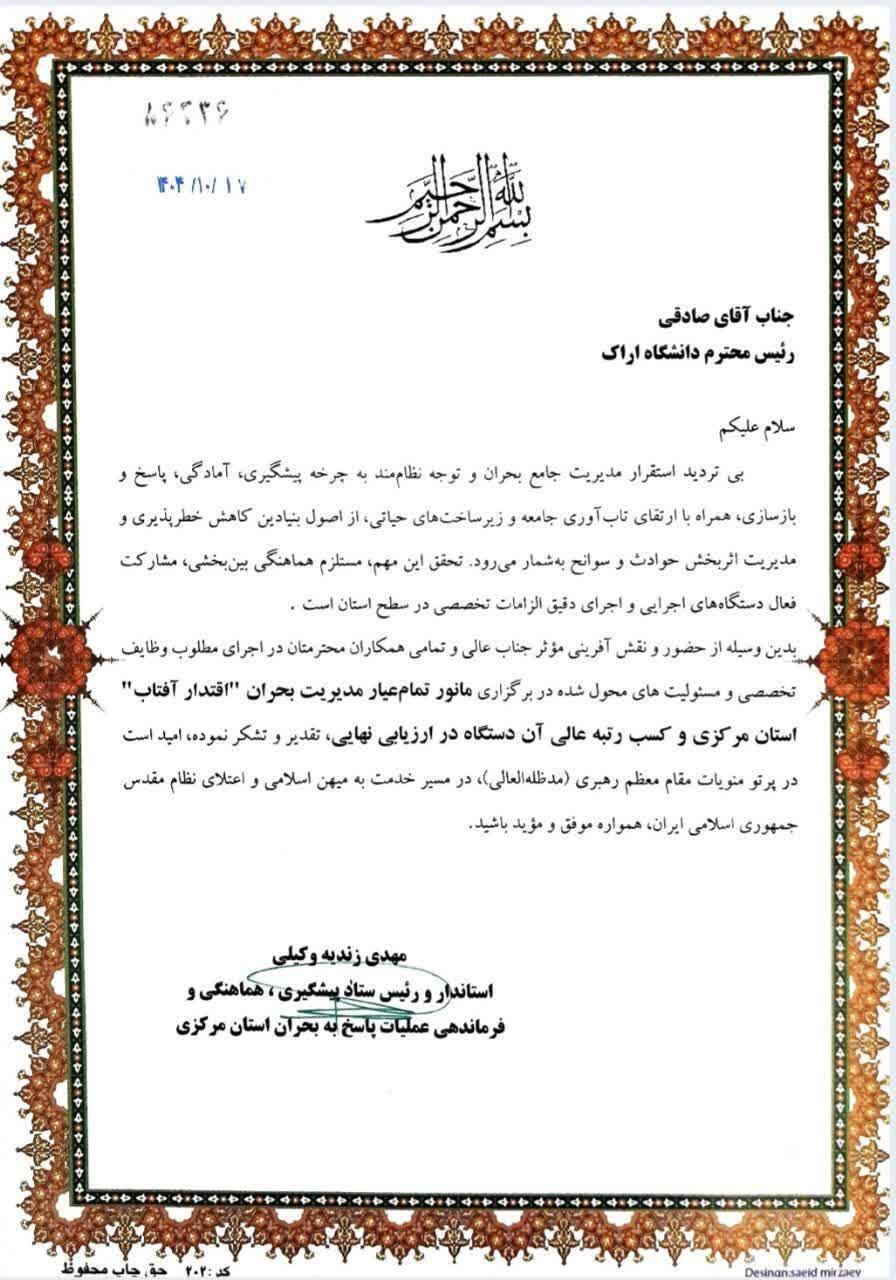 بسمه تعالی ما دانشگاهیان دانشگاه اراک، با عزمی راسخ و...